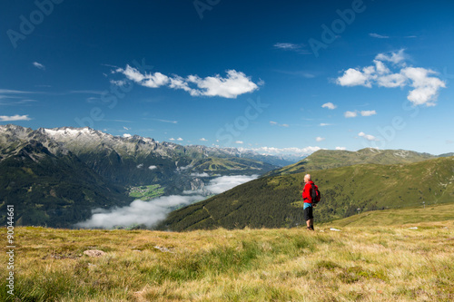 activity, hiking, nature, lifestyle, adult, alps, austria, outdoors, 1, man, mountain, recreation, retirement, senior, walking, active, view, scenic, sky, leisure, adventure, landscape, backpack, hiker, travel, vacation, summer, standing