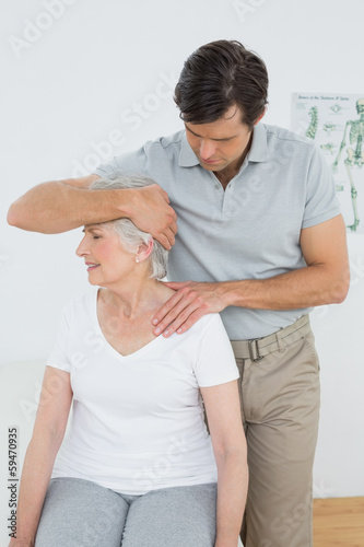 Senior woman getting the neck adjustment done