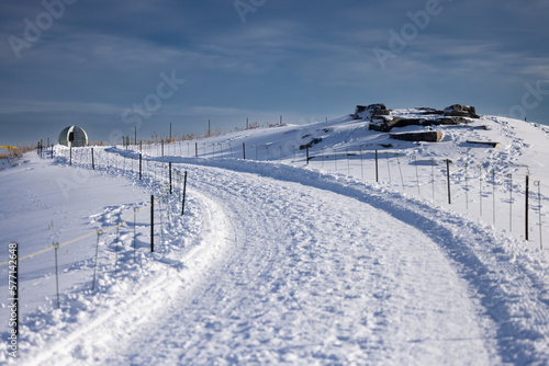 path, snow, snowy, curve, white, goo, gas, winter, route, cold, landscape, nature, shaft, ice, heaven, way, mountain, country, season, rural, byway, daytime, weather