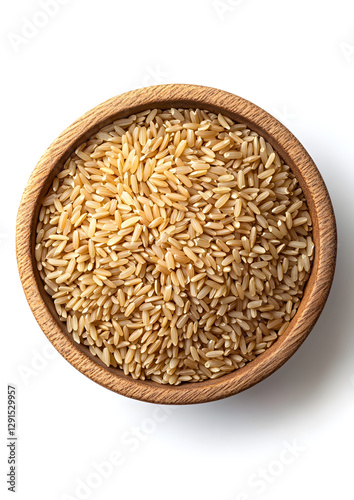 Separate Wooden Bowl of Brown Rice Isolated on White Background