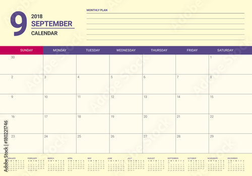 September 2018 planner calendar vector illustration