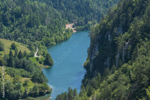 lake, landscape, water, mountain, nature, river, sky, sea, summer, view, rock, travel, forest, mountain, green, tree, coast, hill, cliff, scenic, park