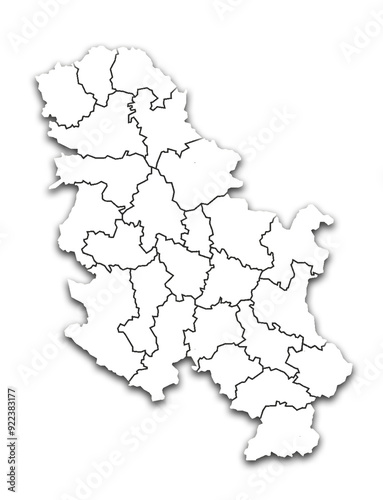 SERBIA MAP WITH ITS DISTRICTS AND POLITICAL ADMINISTRATIVE DIVISIONS