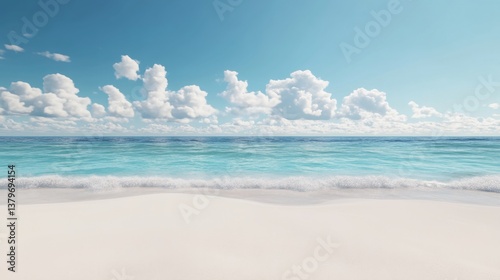 Serene 3D Render of a Minimalist Beach Scene with Calm Ocean Waves