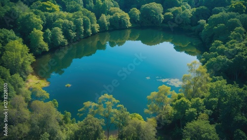 lake, aerial, serene, tranquil, view, blue, sky, green, tree, lush, nature, landscape, outdoors, scenery, calm, peaceful, water, summer, environment, park, idylli, picturesque, daylight, vibrant, untouched, beauty, vacation, travel, relaxation, wilderness, natural, forest, solitude, escape, adventure, explore, recreation, cloud, sunlight
