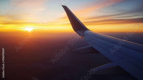 Serene Airplane Wing View with Spectacular Sunset Sky for Inspirational Travel : Generative AI