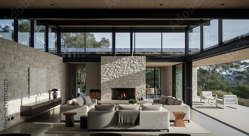 living, interior, design, architecture, home, fireplace, stone, modern, bright, sofa, room, comfort, residential, lifestyle, indoor, contemporary, natural, light, airy, space, furniture, decorative, pillow, cushion, minimalism, elegant, chair, serene, peaceful, retreat, vista, terrace