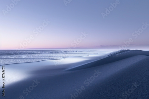 Serene Beach at Dusk with Subtle Black Sand and Twilight Sky
