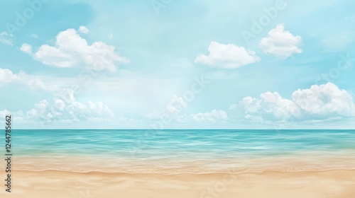 beautiful, beach, landscape, calm, ocean, soft, sand, clear, blue, sky, fluffy, cloud, honed, travel, relaxation, theme, water, calmness, nature, summer, vacation, tropical, scenery, background, horizon, idylli, coastline, wave, sunlight, peaceful, paradise, escape, shoreline, environment, coastal, vibrant, bright, warmth, sunshine, seascape, panorama, rural, refreshing, pristine, shore, marin