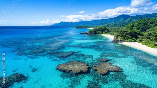 Serene beach scene tropical island nature photography clear water aerial view relaxation and adventure