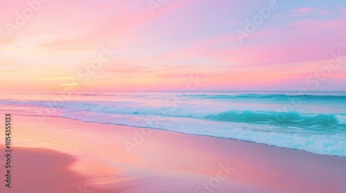 Serene beach with gentle waves and a pastel sky, Nature, Calm