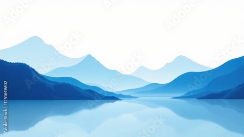 Serene Blue Mountain Range Reflecting in a Calm Lake, a Peaceful Landscape Scene
