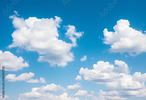 Serene blue sky canvas dotted with fluffy white clouds, idyllic landscape backdrop, weather, cloudscape