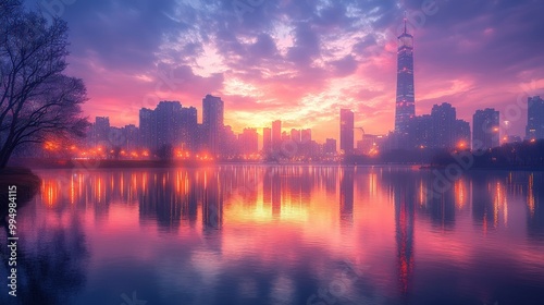 sunset, city, skyline, water, light, building, tree, cloud, evening, atmosphere, tranquil, colours, nature, urban, peaceful, scenery, dusk, horizon, mist, photo, landscape, serene, beauty, architecture, calm, illumination, park, river, silhouette, environment, view, sky, twilight, vibrant, waterfront, city landscape, calmness, scenic, picturesque, panoramic, glow, light