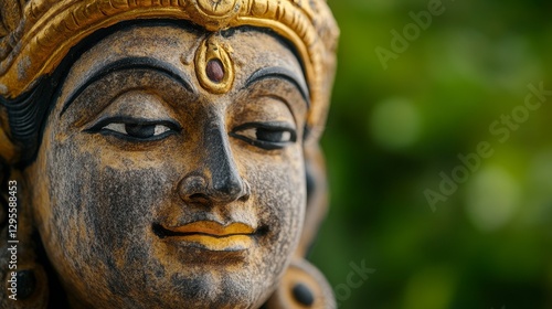 Serene Close-Up of Artistic Hindu God Sculpture in Natural Setting