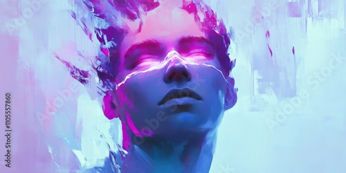 digital artwork, illustration, painting, portrait, futuristic, holographic, cyan, magenta, white, serene, peaceful, calm, tranquil, abstract, mystical, spiritual, glowing, vibrant, colourful, imagination, creativity, fantasy, dreamlike, visionary, art, graphic, design, artwork, image