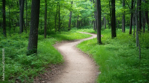 Serene Forest Path: A Winding Trail Through Lush Greenery