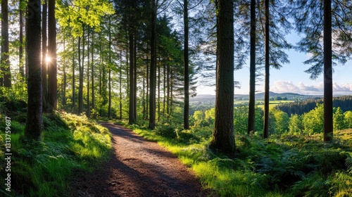 forest, pathway, tree, sunlight, greenery, landscape, nature, calmness, scenic, environment, adventure, lush, peaceful, trail, ecosystem, foliage, hill, shadow, serenity, fresh air, colourful, exploration, biodiversity, spring, summer, wildlife, morning, scenic view, walking, hiking, wood, natural beauty, bright, calm, picturesque, clear sky, wilderness, trail