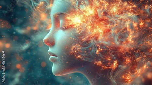 girl, woman, face, profile, hair, fire, smoke, flames, energy, power, mystical, magical, spiritual, fantasy, surreal, art, abstract, beauty, light, dark, glow, ember, spark, aura, aethereal, dreamlike, vision, peace, calm, serene, tranquil, soul, mind, imagination, creativity, emotion, feeling, passion, intensity, mystery, enigma, portrait, head, eye, closed, peaceful, vibrant, colourful