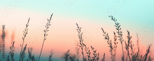 Serene grass silhouettes against a pastel sky at dusk, creating a tranquil atmosphere that evokes peace and natural beauty.