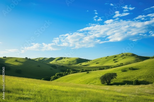 landscape, serene, nature, blue skies, calmness, rolling hills, countryside, natural beauty, lush, scenic, rural scene, peaceful, sunshine, springtime, environment, environmentally friendly, travel destination, pasture, open space, idylli, cloud, pastoral, vibrant, ecotourism, landform, agriculture, panoramic, terrain, undulating, conservation, hiking, freshness, meadow, photogenic, remote, solitude, daytime, environmentalism