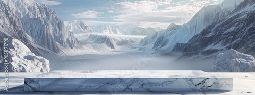 mountain, icy, marble, platform, tranquil, landscape, sky, cloud, snow, nature, winter, serene, scenery, cold, frost, ice, wilderness, environment, majestic, white, panoramic, geology, stone, arctic, highland, snow-capped, peak, terrain, crisp, clear, background, horizon, remote