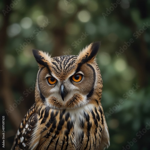 Serene image of a long-eared owl nestled in a cozy tree hollow, with its ear tufts blending into the surrounding branches