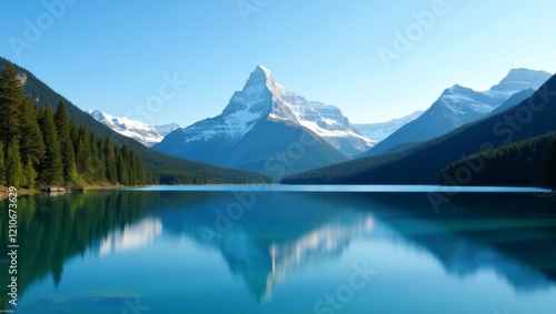 landscape, panoramic, lake, mountain, serene, clear sky, snow-capped, nature, forest, evergreen, water, calmness, bright, vibrant, scenery, travel, adventure, wilderness, natural beauty, blue, hiking, summer, scenic, idylli, peaceful, mountain chain, calm, crystal-clear, picturesque, stunning, beauty, environment, photo, exploration, greenery, blue skies, resort, camping, ecotourism, wildlife, seasonal