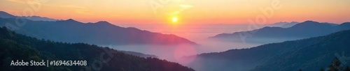 Serene landscape at dawn, misty mountains reflecting spiritual energy, tranquil atmosphere, perfect for meditation and mindfulness , ethereal, hills