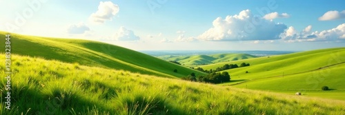 Serene landscape of rolling hills and vast meadows, meadow, sky, landscape