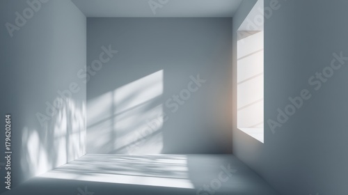 Serene Minimalist Interior Space with Soft Shadows from Natural Light Filtering Through Window Creating Calm Ambiance for Relaxation and Creativity