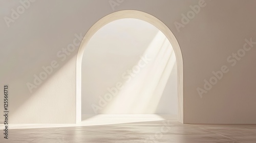 Serene Minimalist Interior with Soft Light Streaming Through an Elegant Archway
