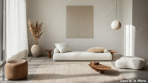 Serene Minimalist Living Room Interior Design with Neutral Tones and Natural Textures