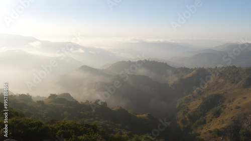 morning, landscape, mountain, mist, fog, nature, sunlight, horizon, vale, calmness, scenic, cloud, outdoors, travel, peaceful, bright, greenery, panoramic, view, wilderness, terrain, scenery, sky, elevation, dawn, adventure, exploration, environment, beauty, natural, daylight, remote, vista, calm, solitude, picturesque, sunrise, formation, earth, hill, sunlit, topography, open, foreground