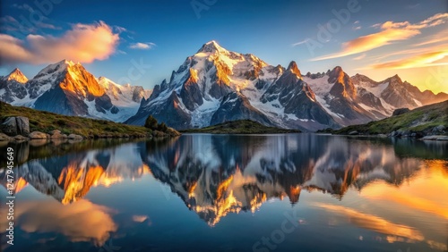 golden hour, chamonix, mont blanc, still water, nature, mountain chain, serenity, sunrise, alps