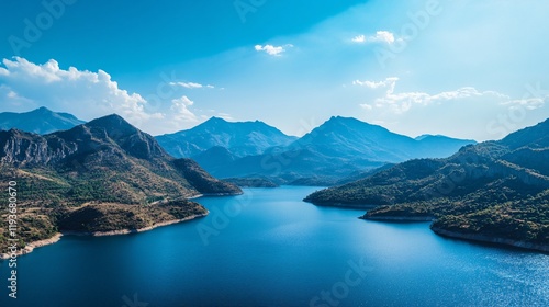 bergsee, mountain chain, blue water, clear sky, panoramic view, tranquil scene, mountain peak, blue skies, cloud, water reflection, aerial view, travel destination, wilderness, beautiful nature, calm water, environment, nature, landscape, forest, sky, background, natural beauty, environmentally friendly, conservation, environmental protection