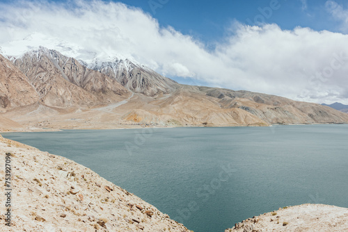 adventure, alpine, beauty, blue, calm, capped, clear, cloud, elevation, environment, exploration, horizon, lake, landscape, mountain, nature, panorama, peak, pristine, remote, scenic, serene, sky, snow, tranquil, travel, huge, view, water, wilderness, xinjiang