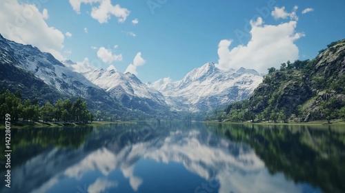 Serene Mountain Lake Reflection, A Breathtaking Alpine Landscape