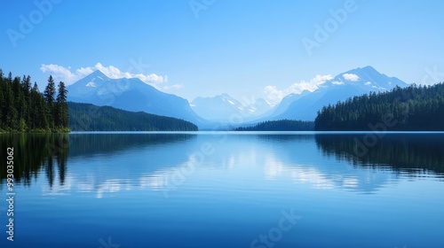 Serene Mountain Lake Reflection, Blue Sky, Peaceful Landscape, Glacier National Park, Nature ,reflection