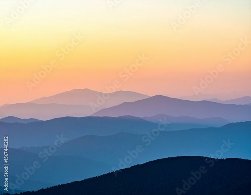 mountain, sunset, sky, landscape, nature, scenic, silhouette, layer, haze, mist, atmosphere, orange, purple, pink, blue, dawn, dusk, evening, horizon, peak, ridge, mountain, range, travel, adventure, beauty, serene, peaceful, calm, tranquil, vista, view, background, gradient, colours, light, soft, vibrant, overlook, highland, rolling, hill, alpine