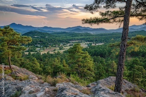 mountain, peak, landscape, nature, sunset, horizon, tree, vale, sky, scenery, calmness, adventure, wilderness, travel, exploration, panoramic, serene, scenic, daylight, beauty, calm, lush, forest, natural, remote, peaceful, rural, environment, fresh, cliff, terrain, flora, sunlight, hiking, vista, breathtaking, view, elevation, photo, panorama, get-away, holiday, vacation, life events, wild