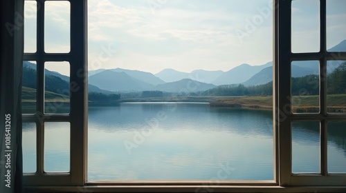 Serene Mountain View Through a Window