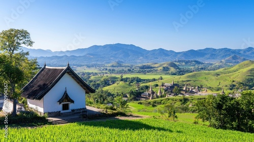 landscape, mountain, vale, village, house, building, rural, scenic, nature, outdoors, travel, photo, view, hill, green, field, tree, sky, day, sun, bright, peaceful, serene, calm, tranquil, quiet, remote, distant, horizon, background, scenery, panorama, vista, beautiful, amazing, marvellously, pretty, attractive, pleasant, fascinating, picturesque, idylli, charming, captivating, enchanting, alluring, mesmerizing, breathtaking