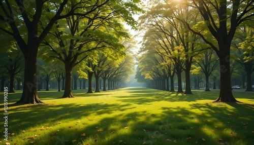 Serene Park Landscape with Majestic Trees in Stunning HD 8K Resolution for a Breathtaking View