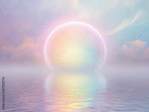 pastel, sky, cloud, calm, water, ocean, sea, rainbow, colours, light, glow, orb, circle, aethereal, dreamy, spiritual, peaceful, tranquil, serene, soft, gentle, magical, mystical, fantasy, hope, serenity, beauty, nature, abstract, background, texture, illustration, artwork, design, vibrant, radiant, sunrise