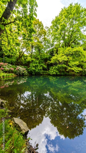 Serene pond in a lush park