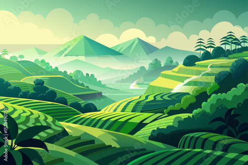 Serene Rice Terraces A Breathtaking Landscape Illustration