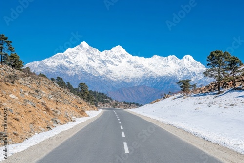 himalayan, mountain, road, snow, blue, sky, landscape, winter, scenic, travel, adventure, empty, winding, majestic, peak, morning, light, nature, escape, serene, peaceful, quiet, journey, picturesque, exploration, freedom, breathtaking, outdoors, countryside, indian, horizon, calmness, crisp, air, elevation, trip, alpine, natural, beauty, inspiring, solitude, remote, untouched, wilderness, huge