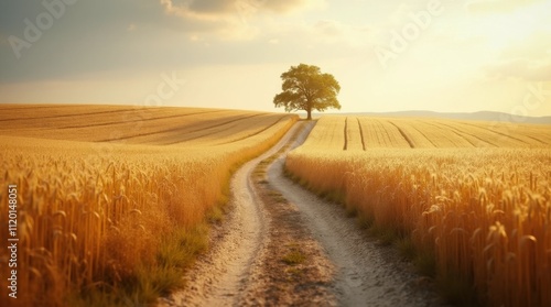 rural, scene, serene, countryside, dirt road, winding road, wheatfield, farm, agriculture, landscape, nature, summer, autumn, sun, light, peaceful, tranquil, quiet, calm, idylli, picturesque, path, field, meadow, horizon, sky, cloud, travel, photo, scenic
