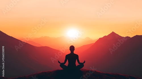 Serene Silhouette of a Person Meditating on a Mountain Peak at Sunrise